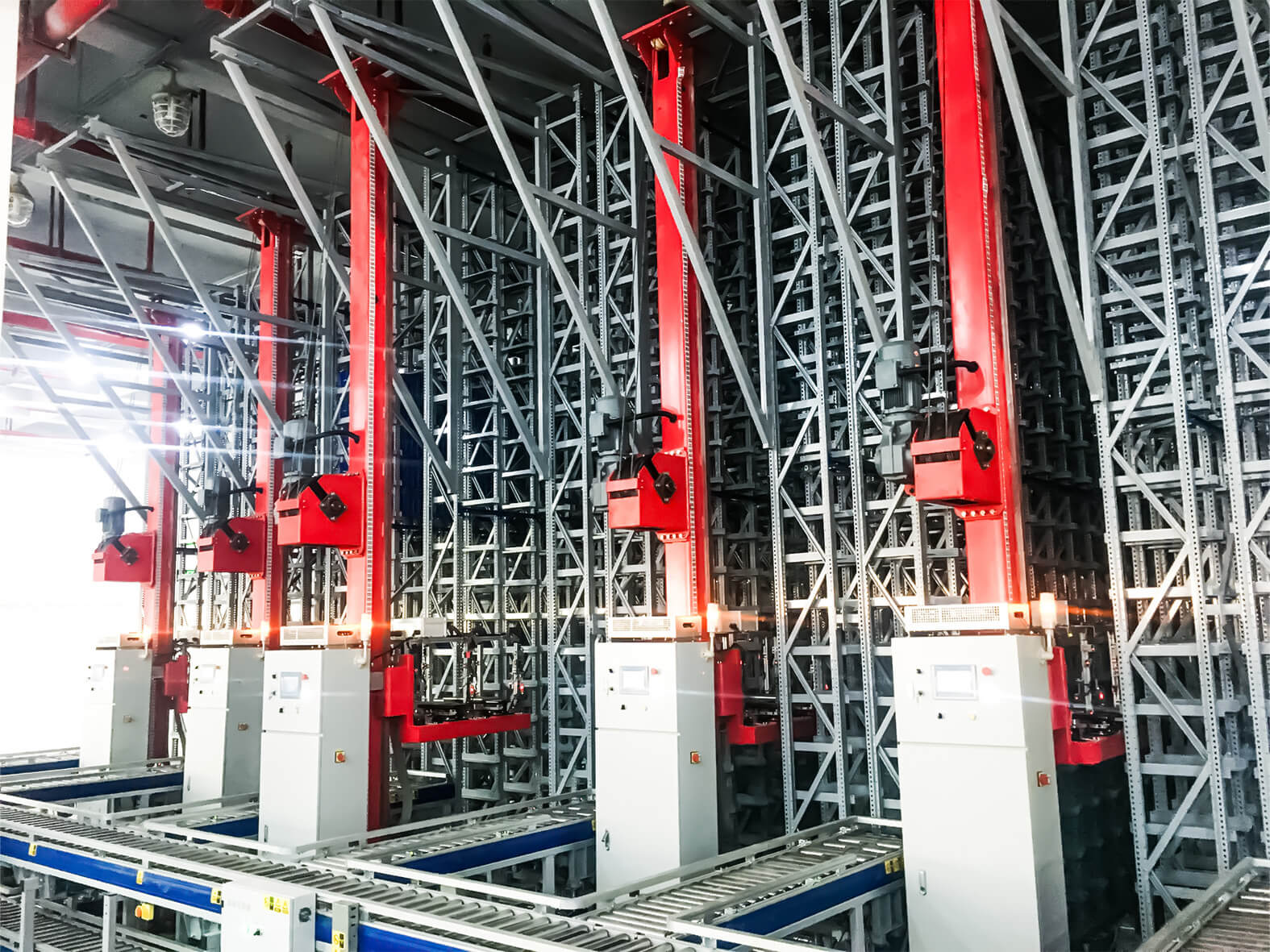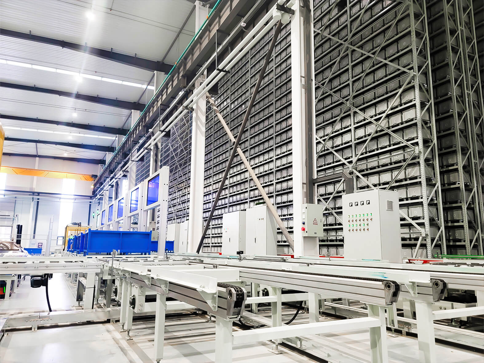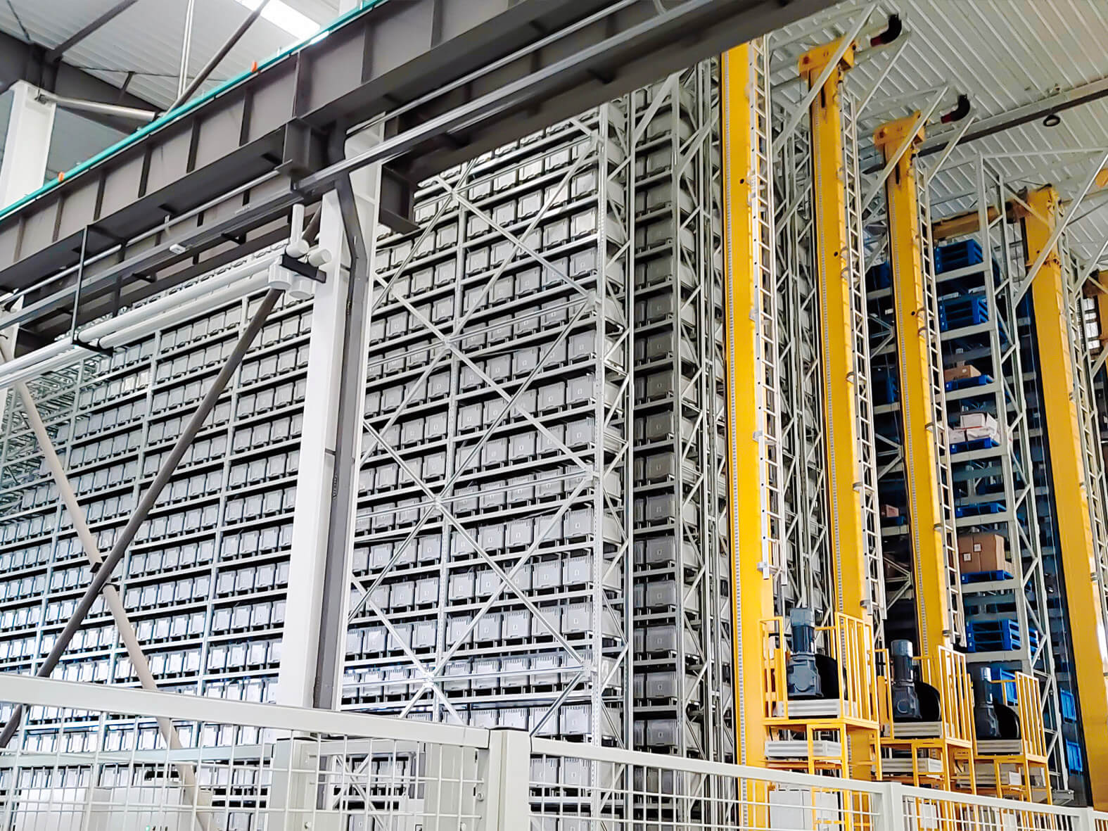 This structure enables high-density vertical storage while maintaining fast access to each carton or tote.